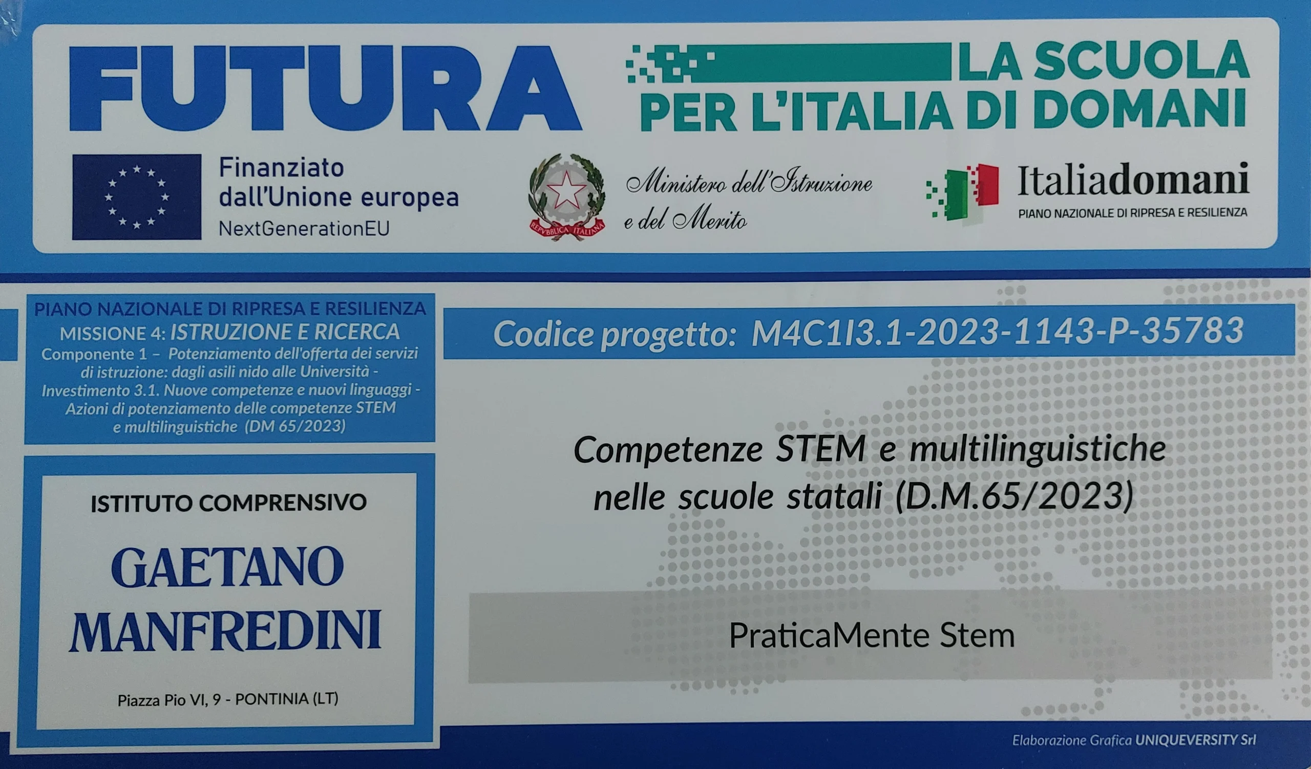 Attraverso tale progetto si intendono realizzare percorsi didattici, formativi e di orientamento per allieve e allievi volti ad integrare il curricolo verticale del nostro istituto con attività, metodologie e contenuti che sviluppino le competenze STEM, digitali e linguistiche.
